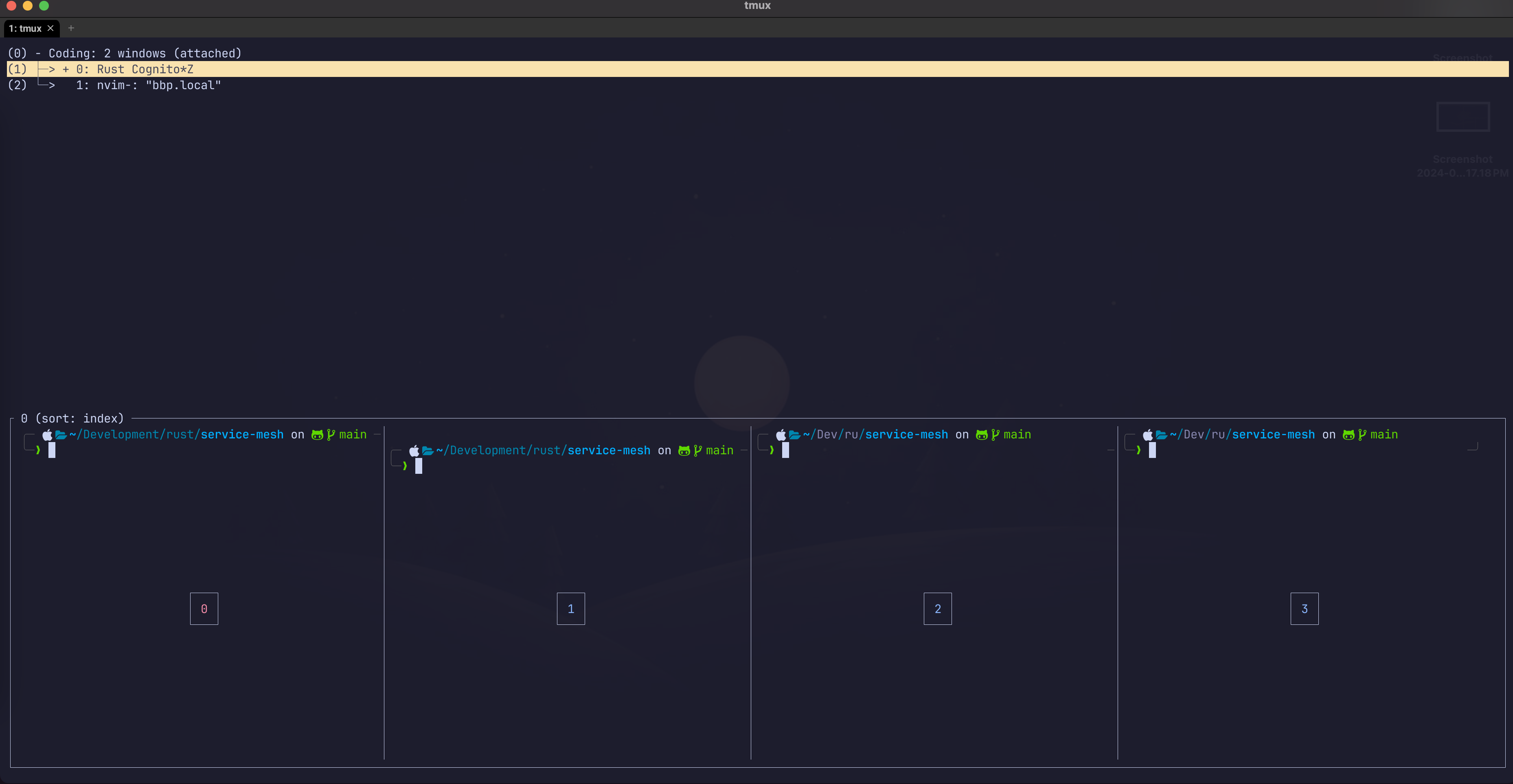 I said multiplexer didn’t I? tmux to be exact. Another game-changer for me. The beauty of using tmux is that I can create sessions, panes, and windows that can then be moved, split, detached, and everything in between. I also have Neovim shortcuts built in so that I can easily move with hjkl which if you know Neovim, that’s life.